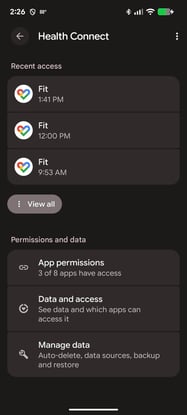 - Make sure 3rd party activity tracking apps are connected with Health Connect by opening the app. You can then see the recent access by the devices that are connected.