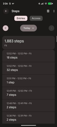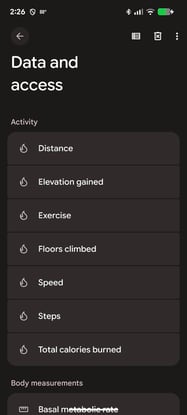 - To check on if activity is pulling into Health Connect, select Data and Access and then select the activity that you want to check to see if there is data there.